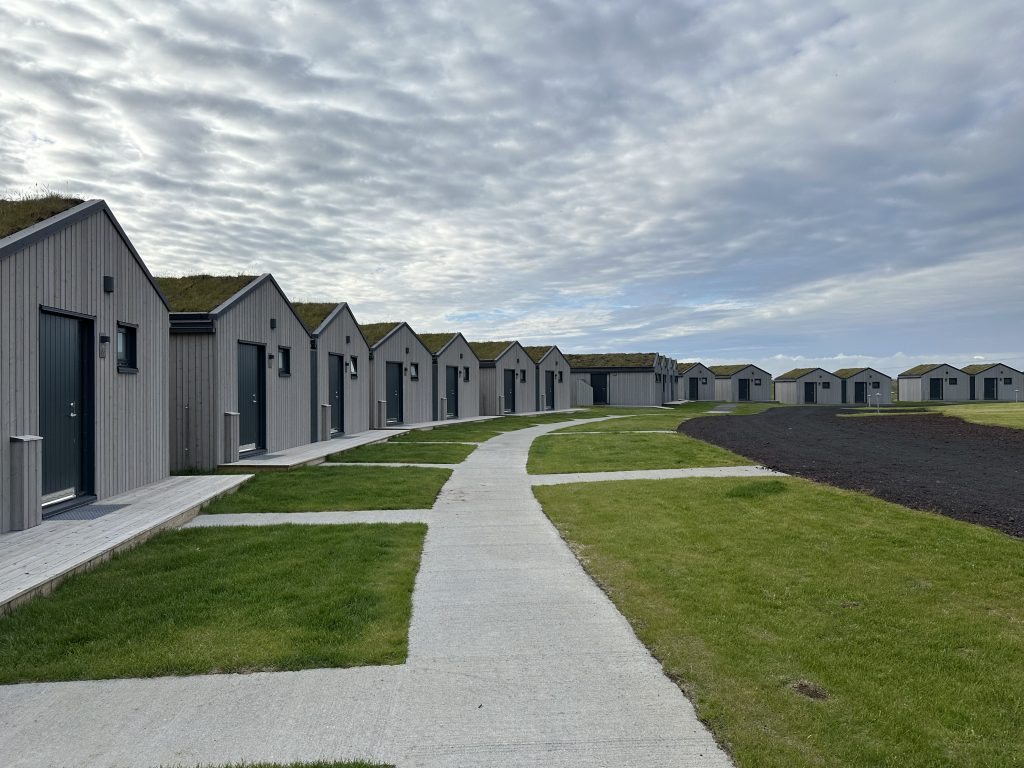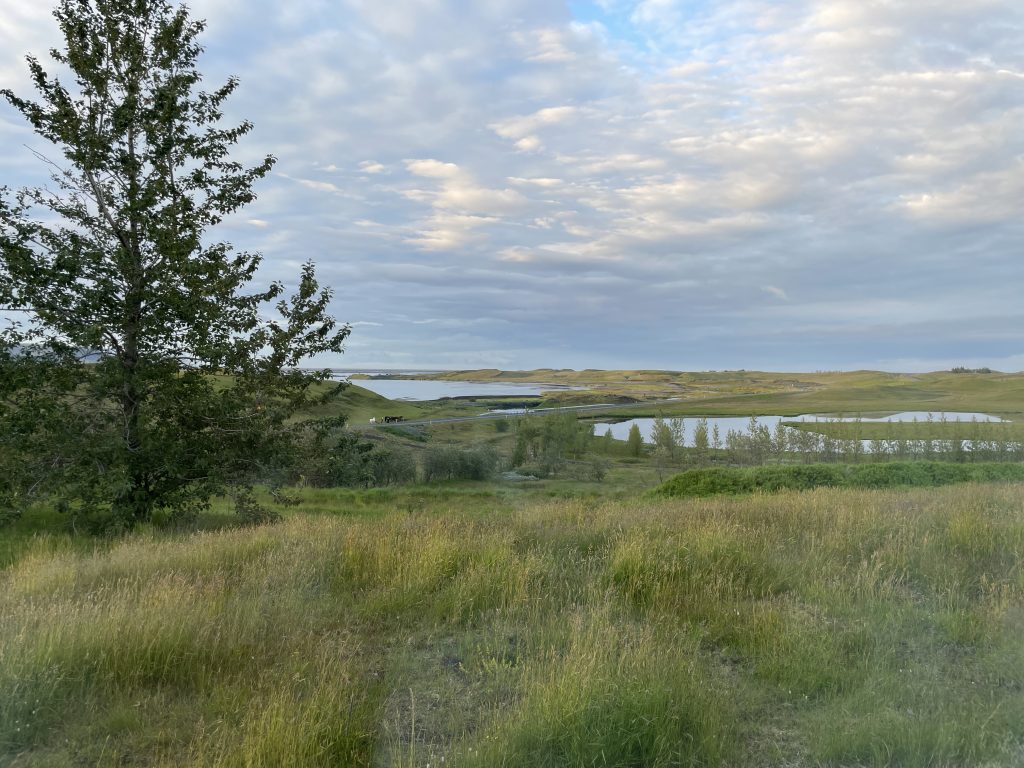Our final full day in Iceland began with a delightful breakfast at the Magma Hotel. It was, without a doubt, the best hotel breakfast I’ve experienced. The spread featured an array of fresh fruit, meats, pastries, homemade bread, juices, coffee, and more. Some of the cottages have a stunning view of the lake, while across the road, we caught sight of beautiful horses.