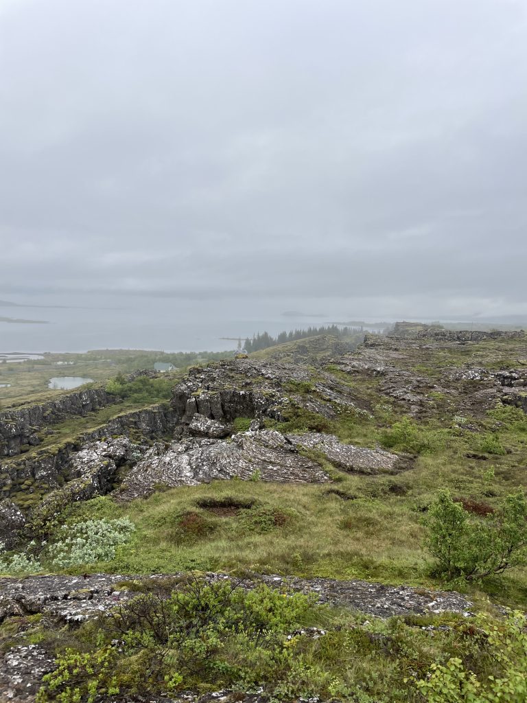 After dinner we drove straight to Almannagjá to hike Almannagjá and Lögberg. This is the hike we did. We didn’t start the hike until 8:30pm, and the late start meant we had the entire park to ourselves, which was surreal. Looking back, I wish we had embraced “chasing the midnight sun” —more on that below—and adjusted our schedule to hike at night and rest during the day. The weather on that first day was rainy and cold, so layering up was essential. A good rain jacket and waterproof shoes made all the difference, and I suspect the poor weather was why we didn’t see anyone else on the trail.