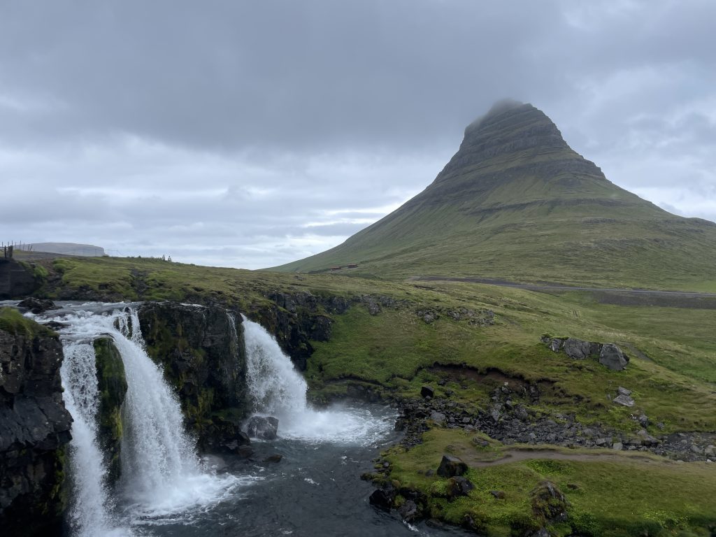 Next we embarked on the drive to Kirkjufell. With no stops, the drive takes about 3 hours. We had this “hike” as our destination in Apple Maps, though it really was a short walk from the parking lot to the waterfall. This parking lot does require payment, though can be done by phone, as most lots do not have a ticketing station. Failure to pay the parking fees can result in fines. While the drive seems intimidating at first, it is a gorgeous drive along the coast and the three hours flew by. We had very rainy and gloomy weather this morning though the drive was worth it. I imagine it would be even prettier on a sunny day or with the midnight sun illuminating Kirkjufell. We had planned to visit this Svöðufoss hike, but with our last-minute decision to go to the bread baking class, we decided to skip.
