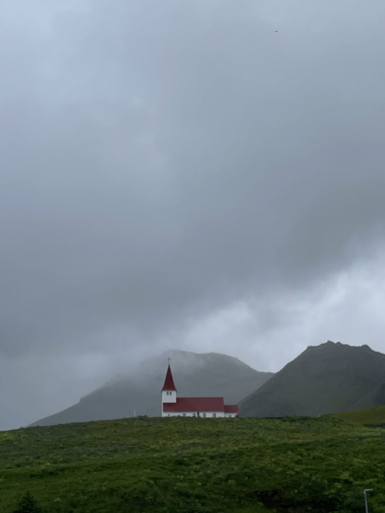 We checked out of the hotel and started the drive for the South Coast. The drive from Hótel Laugarvatn to Diamond beach is just under 4.5 hours. Our first stop was Diamond Beach. Along the way, I noticed a beautiful church perched atop a hill in the distance. As we approached, a town emerged and I had a clearer view of the church. I knew we would need to stop on the way back as the church was too cute to pass up seeing. While you can drive up to the church in Vík for breathtaking views of the area, we saved that for the return trip since we were pressed for time (more on that later).