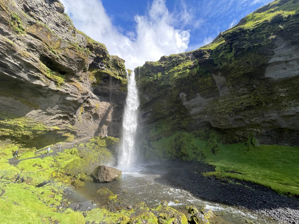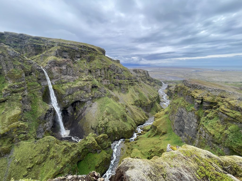 We wrapped up at the Beach and made our way to our first hike of the day. We drove to Múlagljúfur Canyon and hiked this trail. This is by far the best hike I have ever done. The scenery, the colors, the waterfalls, the animals, the tranquility, the glacier peeking through the lush green mountain, nothing I have hiked before can compare to this. The hike is about 3.6 miles and took us about 4 hours in total as we stopped frequently and continued climbing beyond the hike’s end point. You can keep climbing the trail to get higher, and as you do you will see a glacier in the near distance! Múlagljúfur was truly one of the most magical, unreal landscapes I have seen.