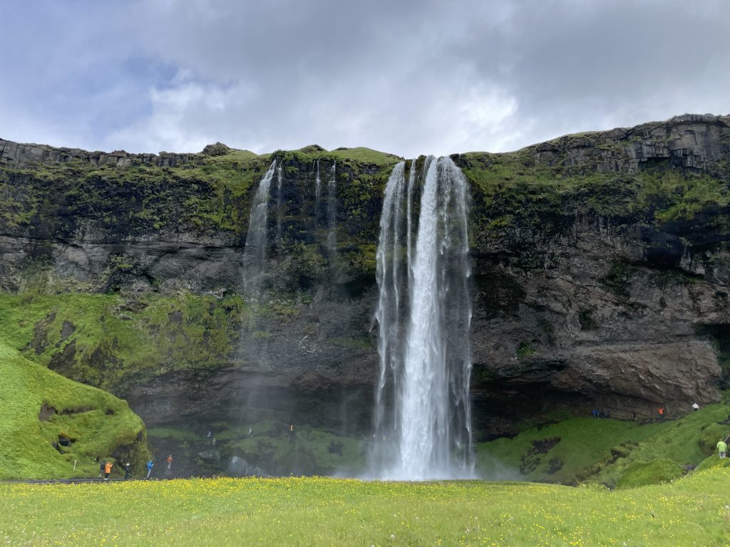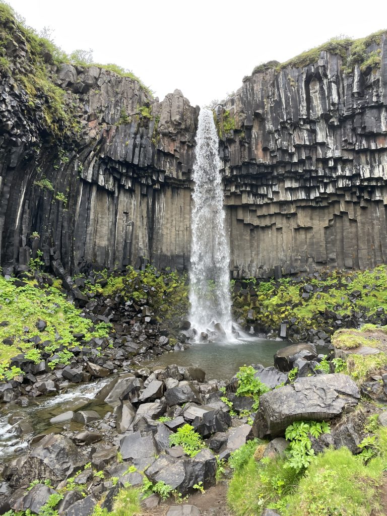 After the beach, we drove to Kvernufoss. This waterfall is severely underrated. There is a small river that leads you to the waterfall which is situated between lush greenery. This day was the only full sunny day we had and that truly made all the difference. The blue sky paired with the green mountain and the glistening waterfall provided incredible photos. This waterfall wasn’t too busy and we had no other tourists there for a while which was amazing for photos. This is the short hike we followed.