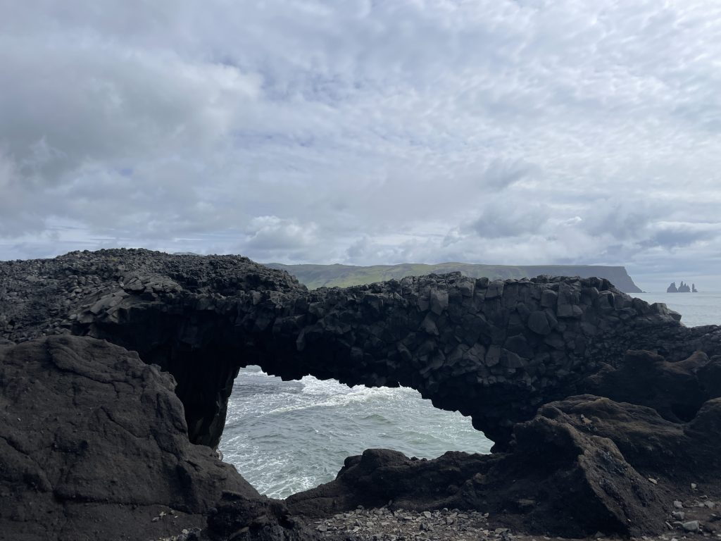 The mistake here was going to the wrong end of the beach, to the inaccessible side. There are two ends of the beach and you will want to go to the beach on the left side. This blog does a great job outlining how to reach the beach that lets you walk on it. We went to the side that houses Dyrhólaey, a large sea arch that adds heat to the coast. This side of the beach was no less beautiful with a beautiful coastline and sparkling blue water. There is a tourist center in the parking lot that has restrooms. At the time of visit it was about $1 USD to enter the restroom.